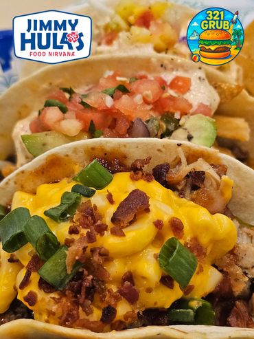 Bring the family, bring the kids, bring the dog! Yes, Jimmy Hula's is that place! Located on Highway US-1 along the Indian River Lagoon, just between Rockledge and Melbourne, Jimmy Hula's Pineda Crossing has something for everyone. This is a casual dining family friendly atmosphere with indoor and outdoor patio seating. Wear your flip flops and bathing suit if you wish and you'll fit right in with their surf/skate vibe that makes Brevard County so unique and awesome! Jimmy Hula's is known for having a wide selection of killer tacos that are filled to the rim and flavorful with their unique line of sauces. They have over 15 signature tacos to choose from. If tacos aren't your thing, they have burritos, bowls, wraps, salads, burgers and much much more! Be sure to follow their Facebook page to see their daily specials. The cool thing about Jimmy Hula's is you truly get a lot of food for a low cost! You won't break the bank and you're belly will be full and happy! Check em out and tell them 321 Grub sent ya!